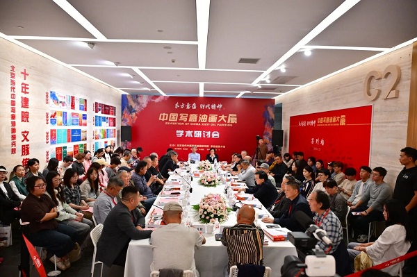 学术研讨会现场 展览开幕后,举行了面向社会大批观众的开放式的学术研讨会,就中国写意油画的理论与创作实践、历史传承文脉、写意油画的文化属性和社会属性等学术问题进行深入研讨。