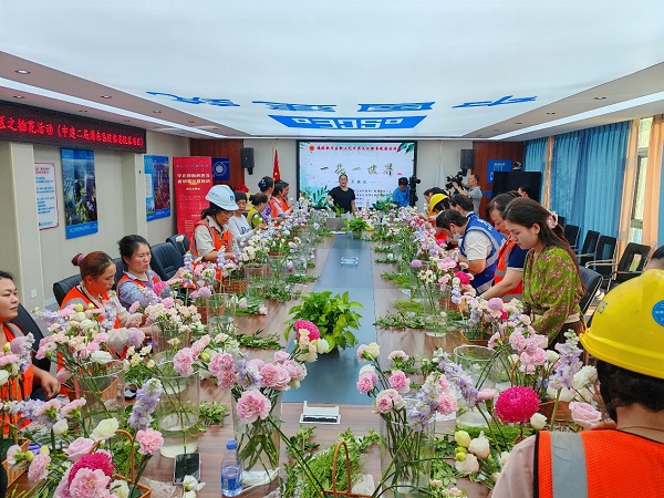 近日,中建二局上海分公司浦东医院临港院区项目联合南汇新城镇总工会开展“以花为媒庆国庆,巧手传情迎中秋”品生活插花活动,临港新片区职工艺术团走进建筑工地,为项目数十名女工友送上节日关怀和暖心服务。