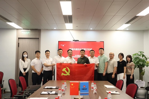 为庆祝中华人民共和国成立七十六周年,以党建为引领,凝聚各方力量,共绘高质量发展新画卷。9月26日,中建四局建设发展有限公司国金公司党支部和五矿钢铁华南大区党支部开展“礼赞华诞聚合力,党建共建促发展”为主题的党建共建活动。 活动中,双方党员首先观看了中央八项规定精神的警示教育片,以典型案例教训强化大家的纪律规矩意识。随后,双方观看了企业宣传片,并就各自的组织架构、党建基本情况、项目基本情况、工程物资供应链运营模式等进行交流,并就党建如何与生产经营相融合进行深入探讨。最后,为深化党建共建机制,国金公司党支部副书记、工会主席陈刚和五矿钢铁华南大区党支部书记、区长唐晖代表双方共同签署了党建共建合作协议。双方约定,未来将在组织建设互促、党员干部互动、优势资源互享、业务发展共赢等方面深化合作,定期开展主题党日、经验交流、业务合作等活动,着力构建“资源共享、优势互补、互相促进、共同提高”的党建工作新格局,将党建互促互进的政治优势更好地转化为发展优势,以优异成绩向新中国七十六周年华诞献礼。