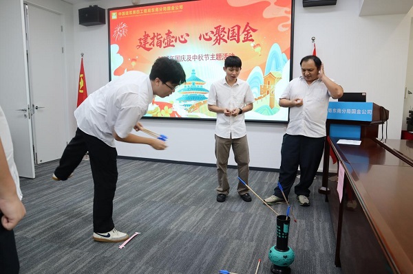 为营造浓厚节日氛围,9月29日,中建四局东南分局国金公司精心组织开展了“建指壶心·心聚国金”主题活动。本次活动别出心裁地策划了“投壶游戏”“飞镖竞技”以及别开生面的“中秋钓月饼”等一系列趣味项目,并准备了丰富精美的奖品。活动现场欢声笑语,气氛热烈,大家踊跃参与,全情投入,在各个游戏环节中尽展风采:在投壶区,大家凝神静气,力求“箭”指壶心;飞镖赛场,参与者目光如炬,上演精准一击;而“钓月饼”环节则妙趣横生,各路“钓手”各显神通。