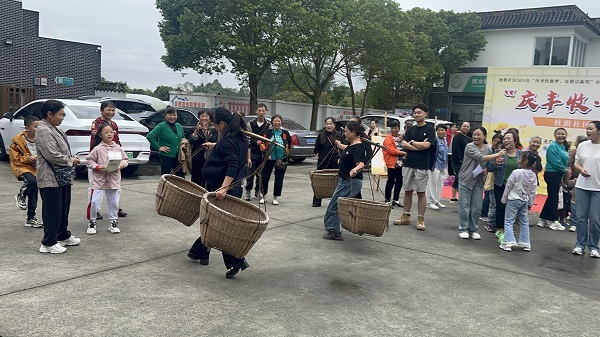 金秋送爽,瓜果飘香。10月12日上午,扯旗社区党群服务中心广场上一片欢声笑语,一场以“庆丰收·促和美”为主题的民俗运动会正在这里火热举行,社区居民热情参与,大家在趣味盎然的农事竞赛中共同体验丰收的喜悦,感受农耕文化的独特魅力。 现场:热火朝天,“农”趣竞赛轮番上演 运动会伊始,广场上便充满了紧张的比赛气氛和阵阵助威声。在“丰收运输队”比赛区,居民们肩挑扁担,两头的箩筐里装满了金黄的南瓜和饱满的红薯。他们需要稳健地绕过障碍物,将“丰收的果实”运送至终点,每一步都考验着平衡与技巧,现场笑声和喝彩声不断。
