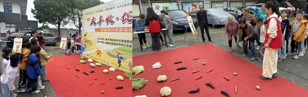 “果蔬套圈圈”区域始终排着长队,男女老少都跃跃欲试。瞄准、投掷……每当有套圈精准地套中地上的蔬菜水果,现场便爆发出一阵欢呼,获胜者喜滋滋地将“战利品”收入囊中。