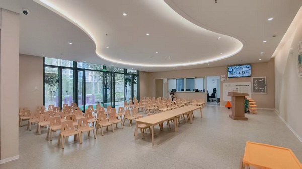 幼儿园多功能实拍图 据了解,该幼儿园是普东片区首个新建公立公办幼儿园,届时将优先保障能建·未来城一期业主子女入学,标志着片区“15年优教圈”建设进入实质阶段。片区后续还将引入武成小学联家校区、华山中学等名校,构建形成“幼儿园-小学-初中”一站式完整教育体系,让全龄段优质教育资源的轮廓愈发清晰,也让能建・未来城的生活价值未来不断持续攀升。