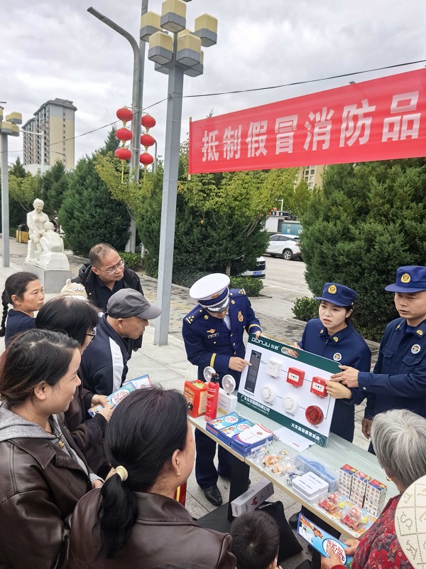 为切实提升群众消防安全意识和消防产品辨别能力,从源头防范因劣质消防产品引发的安全风险,近期,黄陵县消防救援大队联合县市场监督管理局,在新区中心广场开展“抵制假冒消防品,共筑安全防护线”主题宣传活动,为过往群众送上一堂生动的“消防产品安全课”。 活动现场,县消防大队和市场监管局工作人员将日常高频使用的灭火器、应急灯、逃生面罩、烟雾报警器等多种消防产品分类陈列,通过“实物对比+现场讲解”的方式直观教学。消防救援人员详细讲解了“一看二查三试”辨别法:一看3C认证标志和产品铭牌,确认信息完整清晰;二查产品合格证书与生产日期,拒绝过期或无证产品;三试简易性能,如按压灭火器手柄查看密封性、开启应急灯测试断电续航,让群众直观感受伪劣产品“按压无劲、亮灯不稳”的问题隐患。市场监督管理局工作人员则结合近期查处的假冒消防水带、劣质逃生面罩案例,讲解假冒产品的生产套路与法律责任,提醒群众购买时务必选择正规门店,留存购物凭证。