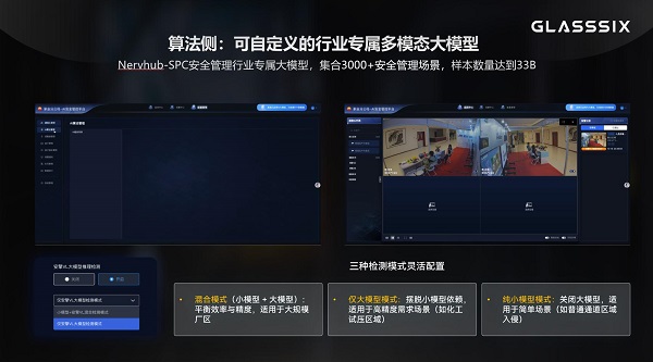 二、破局方案:大模型 + 高算力魔盒,构建 “感知 - 预警 - 管理” 闭环 针对行业痛点,第六镜科技推出 “算法定制化 + 算力本地化 + 管理闭环化” 的 AI 解决方案,核心亮点集中在行业专属大模型与镜界魔盒系列硬件两大创新。 1. Nervhub-SPC 大模型:让 AI “懂” 石油石化安全 基于3000 余个安全管理场景、330 亿参数样本训练,第六镜研发出石油石化行业专属的 Nervhub-SPC 安全管理大模型,创新 “小模型初检 + 大模型复核” 模式: