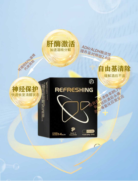 效果时间轴:你的身体正在发生这些变化 第一阶段:酒前防护 (服用后 ~30分钟) 在举杯前30分钟服用,核心成分已开始工作: • 葛根、奶蓟草等迅速作用于肝脏,改善肝脏微循环,提前增强肝脏的“作战能力”,为即将到来的酒精代谢筑起第一道防线。 第二阶段:席间缓冲 (饮酒开始后 ~1小时) 当酒精进入体内,胶囊的抗氧化成分开始中和酒精产生的自由基,像“消防队”一样扑灭肝脏的“氧化应激”火灾。你能感受到的,是更持久的清醒度,不易上头。 第三阶段:酒后解酒 (饮酒结束后 ~20分钟起) 这是关键阶段。二氢杨梅素等成分强力促进肝脏排毒,加速乙醛(导致你头晕、恶心的元凶)的分解与排出。 大多数使用者反馈,在酒后20-40分钟内,能明显感觉到头晕、恶心等不适症状得到有效缓解。 第四阶段:次日焕新 (第二天早晨) 这才是真正的“高光时刻”。 • 蒲公英等成分帮助舒缓了神经与肠胃不适,让你获得更安稳的睡眠。 • 由于肝脏负担被大幅减轻,第二天醒来时,你将告别常见的宿醉感——头不痛、人不乏、神采奕奕,轻松迎接新的一天。