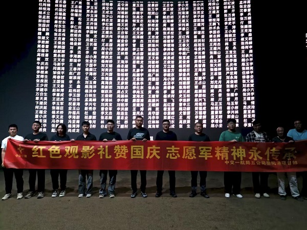 | 近日,中交一航局五公司岳阳港项目部为弘扬爱国主义精神,增强党员和青年职工的历史使命感和责任感,特组织观看红色电影组织《志愿军》。 通过本次观看影片,旨在重温抗美援朝战争的峥嵘岁月,缅怀革命先烈,传承红色基因。同时,进一步激发国企党员和青年职工的爱国情怀,增强历史责任感和使命感,将红色精神转化为实际行动,为公司高质量发展贡献“保落实”力量。(文/图 中交一航局五公司岳阳港项目部 骆京)