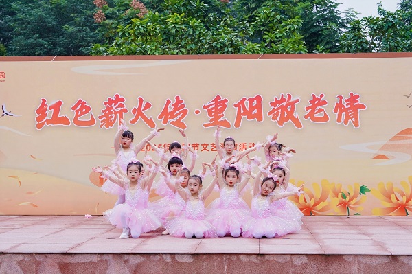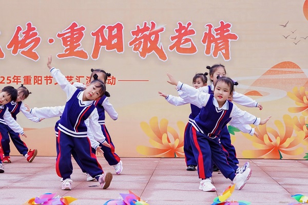 | 为赓续红色血脉、厚植孝亲文化,成都市双流区九江万家幼儿园以“红色薪火传 重阳敬老情”为主题,开展系列主题教育活动。通过“红色教育+传统美德”双线融合,引导幼儿在沉浸式体验中感悟革命精神,在实践行动中传承敬老美德,让红色基因与孝亲文化在童心中生根发芽。 本次系列活动分为校内活动和校外活动,10月28日上午,我园在校内开展了“红色薪火传 重阳敬老情”园级展演活动。孩子们通过情景剧《听爷爷奶奶讲过去的故事》、群舞《少年有志》、手势舞《爷爷亲 奶奶亲》等节目,展现新时代幼儿风采,传递温情与敬意;亲子走秀、情景合唱《如愿》及教师舞蹈《美丽中国》等节目穿插互动,现场气氛热烈。10月29日下午,幼儿代表走进社区开展“小手拉大手,童心暖重阳”活动。老人们手持套圈瞄准奖品,洗洁精、纸巾等实用物资被陆续套中,现场笑声不断。 此次活动以“红色教育”铸魂,以“敬老实践”育人,在幼儿心中播撒下“爱与感恩”的种子,让革命精神与孝亲文化在代际传承中焕发新生机。