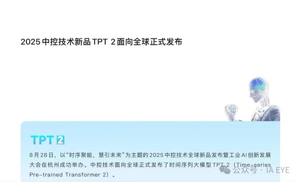 1+2+N架构[图源:蓝卓官微] 2024年,褚健宣布「ALL IN AI」,并发布「流程工业首款AI时间序列大模型」TPT[Time-series Pre-trained Transformer]。 2025年,TPT 2更新。 在褚健的评判里,TPT是工业AI进程里的「里程碑」式存在。 然而,不同于DCS,前述各种被赋予诸如世界级和引领性的产品,终究流于概念,市场冲杀价值,并未显露。 譬如TPT2,发布日累计预定订单企业518家,成交量112套,注册用户3268名。