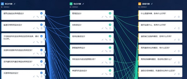 图2 建筑设备自动化知识图谱 问题图谱设计则聚焦能力培养,构建了从基本问题、开放问题到复杂问题的三级问题体系,有效激发学生的深度思考与探究欲望,将被动学习转化为主动探索。