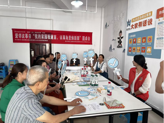 在成都高新区柏合街道东山社区,一场以“爱邻”为名的协商议事实践,正悄然改变着社区居民的生活。通过“爱邻(20)协商议事”项目,居民们的声音不再石沉大海,而是转化为一桩桩、一件件看得见、摸得着的社区新变化。近日,该项目的两次关键活动——从“圆桌讨论”到“现场推进”,生动演绎了居民从“旁观者”到“当家人”的自治历程。 心声被听见:圆桌会上议出“金点子” “公共卫生间设施老旧,卫生状况有待改善”、“咱们的议事角能不能再温馨一点?”……这些来自东山国际D区“人民意见征集箱”里的一张张“小纸条”,成了社区治理最直接的“风向标”。 2025年9月25日,一场别开生面的“爱邻议事日”圆桌会在D区议事角举行。居民骨干、社区工作人员和社会组织代表围坐一堂,主题就是“我的家园我建言,议事角里焕新颜”。