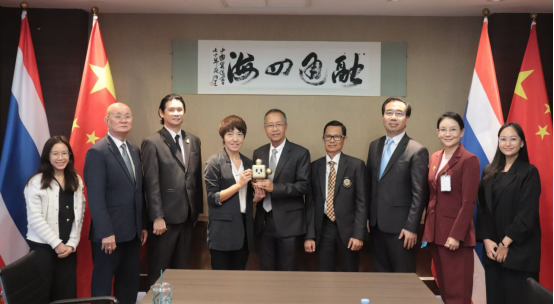 马艳玲代表说中国贸促会始终致力于促进全球产业链供应链合作,为中资企业出海保驾护航。由中国贸促会创办的中国国际供应链合作博览会已经成功举办三届,成为推动各国更好融入全球产业链供应链的重要平台。泰国在湄公河流域具有重要地位,中泰建交50周年为双方合作带来了新的发展机遇,中泰经贸交流尤其是法律交流将为区域合作注入新动力。随后首席代表马艳玲女士向泰国CTAB律协发出邀请,邀请律协参加明年在中国北京举办的新一届中国国际供应链促进博览会。