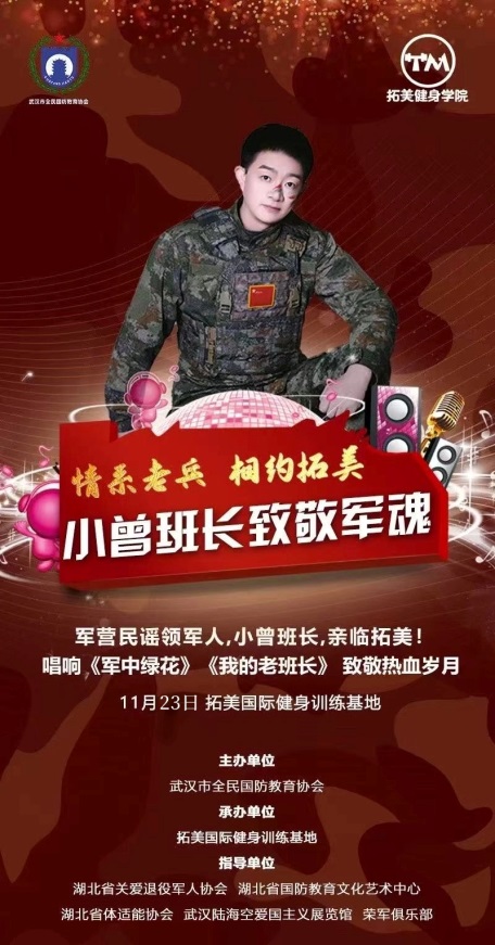 跨界融合:碰撞新火花 "小曾班长",是军歌领域极具影响力的创作者。他以充满激情与力量的歌声,唱出军人的豪迈与担当,传递积极向上的正能量。《军中绿花》《我的老班长》等作品,不仅在军营中广为传唱,也深受社会各界喜爱。 "龚轩校长",是一名九零后的转业退伍军人的杰出代表。他以现代军人特有的品质,顽强意志、永不服输精神,敢打硬仗,勇于挑战,在剧烈的市场竞争环境中,带领一群年轻的创业团队,在中国健美健身行业,"十年磨一剑",创立了属于"拓美人"自己的拓美品牌。以"拓展宏图,美好未来"的愿景,为学校发展定位楚了清晰的方向。 此次小曾班长加盟拓美十周年庆典歌友会,将为活动增添浓墨重彩的一笔。他将以独特的嗓音和精彩的演绎,为现场观众带来一场视听盛宴。相信在他的歌声中,大家能感受到军人的情怀与使命,汲取勇往直前的力量。 拓美十周年庆典与小曾班长歌友会的结合,是一次教育与文艺的跨界融合。一所成就卓越的培训学校,一位备受赞誉的军旅歌手,二者的相遇必将碰撞出别样火花。 这是品牌、文化与资源的完美对接。两位不同领域的军旅人才,在各自岗位上绽放光彩,彼此惺惺相惜,成为本次庆典的点睛之笔。跨界融合不仅为活动注入新活力,也为拓美品牌传播拓展了更广平台。