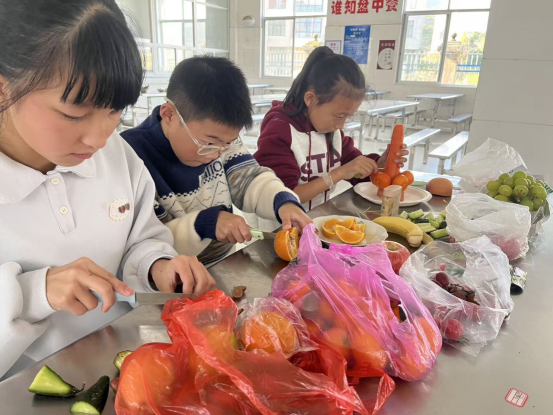 11月14日,劳动技能大比拼成为活动亮点。1-3年级在各班教室开展初赛,同学们奋勇争先,选拔出3名佼佼者晋级决赛;4-6年级学生经居家练习后直接参与决赛。整理书包、穿衣服系红领巾、叠衣服系鞋带、快手剥蒜、水果拼盘等比拼项目,贴合学生日常生活。一年级学生快速将文具、书籍、水杯归置整齐,书包内部干净有序;二年级学生熟练穿好校服、系出规范美观的红领巾;三年级学生叠衣服服帖平整,系鞋带结实又美观;四五年级学生指尖翻飞,迅速剥净蒜皮;六年级学生巧用三种以上水果,经削皮、切割、搭配,打造出色彩鲜艳、造型别致的水果拼盘。评委们依据“整洁度、规范性、美观度、完成时效”等标准现场打分,赛场氛围紧张又欢乐。