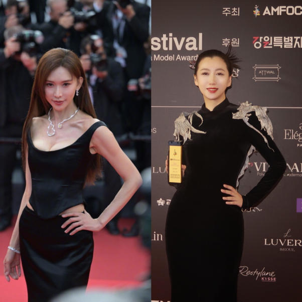 (左:曲迪娜 右:林志玲) 不论两位中国女明星奖项有何区别,都是在国际舞台看到中国女性的闪耀身影。 |