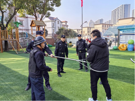 为切实强化校园安保工作,提升全体师生应对突发暴恐事件的能力,筑牢校园安全第一道防线,柯桥区杨汛桥蒲荡夏幼儿园于2025年11月21日特邀杨汛桥派出所的民警们走进校园,联合开展了一场逼真、高效的反恐防暴安全演练活动。此次警园紧密协作,为全园师生上了一堂印象深刻的生命安全教育课。 演练前,幼儿园安全工作领导小组与杨汛桥派出所的民警们进行了周密部署。民警根据校园环境、幼儿特点及可能发生的突发情况,对演练方案进行了专业指导和完善,确保流程清晰、责任到人、措施有效,为演练的顺利开展提供了坚实的保障。 上午10点整,演练准时开始。一名由家长扮演的“歹徒”,假借接送幼儿的名义企图强行闯入园区。安保人员上前盘问时,“歹徒”突然情绪失控,亮出“凶器”,试图冲向正在户外活动的幼儿。危急关头,门卫保安立即启动“一键式报警”系统,并通过对讲机向园内发出预警。听到警报后,全园迅速启动反恐防暴应急预案。 户外活动的班级教师和保育员反应迅速,临危不乱。她们立即停止活动,大声提醒并组织本班幼儿按照预定的安全疏散路线,快速、有序地向最近的教室撤离。进入教室后,老师们第一时间紧闭门窗,用重物抵住门背,引导孩子们安静地躲藏在桌底等安全角落,并时刻安抚幼儿情绪。 与此同时,幼儿园应急小组闻讯而动,手持防暴器械与安保人员一同上前,与“歹徒”展开周旋和对峙,竭力阻止其接近教学区。接到“报警”后,杨汛桥派出所的民警迅速出动,警车呼啸而至。民警们行动果断、配合默契,运用专业的战术动作和防暴装备,迅速将“歹徒”合围并成功“制服”,带离现场。整个处置过程干净利落,展现了极高的专业素养。(通讯员:丁春方 夏佳佳)