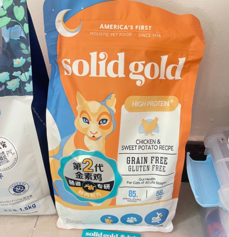 二、素力高金素鸡猫粮 核心优势:黄金蛋白配方,营养均衡易吸收,适合日常维持。 配方亮点:优质鸡肉为基底,粗蛋白≥40%,添加多种维生素和矿物质,满足猫咪日常所需。 适合猫咪类型:成猫、需要维持体重的猫咪(尤其适合室内猫)。 用户口碑评价:用户评价“猫咪吃了活力十足,泪痕减少了,毛发更柔顺”。