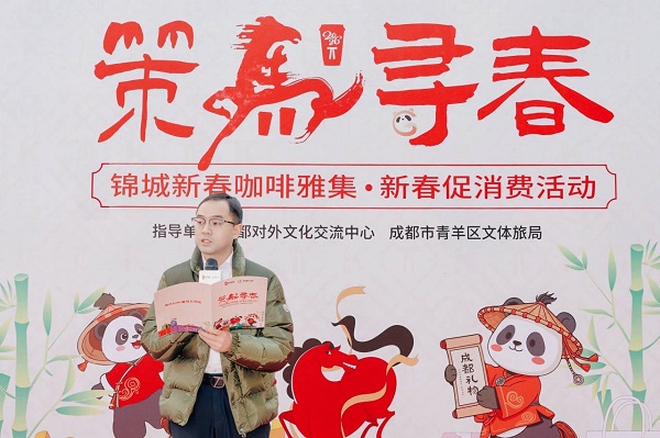 一杯咖啡,一张地图,畅游成都新春点位 活动现场,成都市文广旅局、青羊区文体旅局相关领导以及肯德基川渝市场、祠堂街文化街区代表人共同上台,宣布《锦城新春咖啡雅集地图》上新及票根兑换福利同步启动。