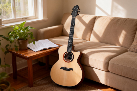 「好看」的第一重:始于吸引,降低开始的“心理门槛”我们都有这样的时刻:想到练琴,却感觉准备过程繁琐沉重。 伊瑞斯星月吉他的“好看”,首先致力于解决这个问题。其设计汲取自夜穹星月的静谧色调——在视觉上具有天然的安抚力。独特的星月元素下,木材的呼吸感清晰可见,它不像一件冰冷的工具,而像一位有温度、有故事的伙伴。 结果便是: 当你看向它时,内心的抗拒感会悄然消解。它静默的存在,本身就是一个低语:“来吧,弹一会儿。” 美好的设计,移除了你与音乐之间的第一道心理屏障。 「好看」的第二重:久处不厌,在细节中安放注意力练习需要专注,而杂乱刺眼的设计会无形中消耗心神。 伊瑞斯星月将所有视觉细节导向“沉浸”: 亮光表面:漆面通透,亮而不刺眼,让你的视线可以长久地、舒适地停留在吉他上。 私密化的符号:指板上用深海母贝雕刻的星月图案,与琴头口轮相呼应,是只属于演奏者的小小惊喜。在重复的练习中,发现这些细节,会成为枯燥时刻的一抹愉悦。 极致顺滑的触感:从琴颈到琴体,每一处接缝都经过无缝处理,指尖所及皆是温润流畅。触觉上的愉悦,直接转化为练琴时更放松、更持久的状态。 设计服务于心流: 当你无需被突兀复杂的视觉元素或粗糙的触感打扰,便能更快地进入心无旁骛的演奏状态,专注于声音与技巧本身。 「好看」的第三重:空间氛围,让音乐成为生活背景一把吉他,在不弹奏时,也是你生活空间的一部分。 伊瑞斯星月吉他本身就是一件极具格调的静物艺术品。无论是倚靠在沙发旁,还是悬挂于墙面上,它都能瞬间提升空间的审美氛围与文艺气质。它持续地散发着一种沉静而优雅的“场域能量”。 这意味着: 音乐不再是你需要特意“开始”的任务,而是自然融入你生活环境的背景。它在你阅读、休息或思考时,始终存在于余光之中,持续地、温和地激发你的创作欲与演奏欲。音乐,因此而成为一种随时可进入的生活状态。 「好看」的第四重:陪伴与见证,是坚持的隐秘动力我们与乐器的关系,是日积月累的情感联结。 伊瑞斯星月吉他经得起时间的审视。它的色彩沉稳耐看,工艺确保历久弥新。随着年月增长,琴体上可能留下的细微使用痕迹,都会与温润的木纹融为一体,成为你音乐旅程的独特勋章。 这种“耐看”与“成长性”,带来一种深层的心理认同: 它不仅是你的乐器,更是你音乐之路的忠诚见证者。它的美,不随时间流逝而褪色,反而因你的弹奏而更具韵味。这份美感上的满足与陪伴感,是鼓励你日复一日拿起它,与之共处、共同成长的隐秘而温柔的动力。